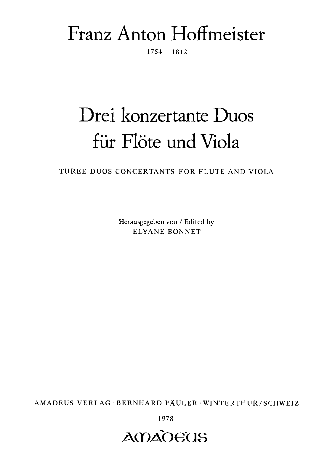 3 Duets for Flute and Viola (Hoffmeister, Franz Anton)