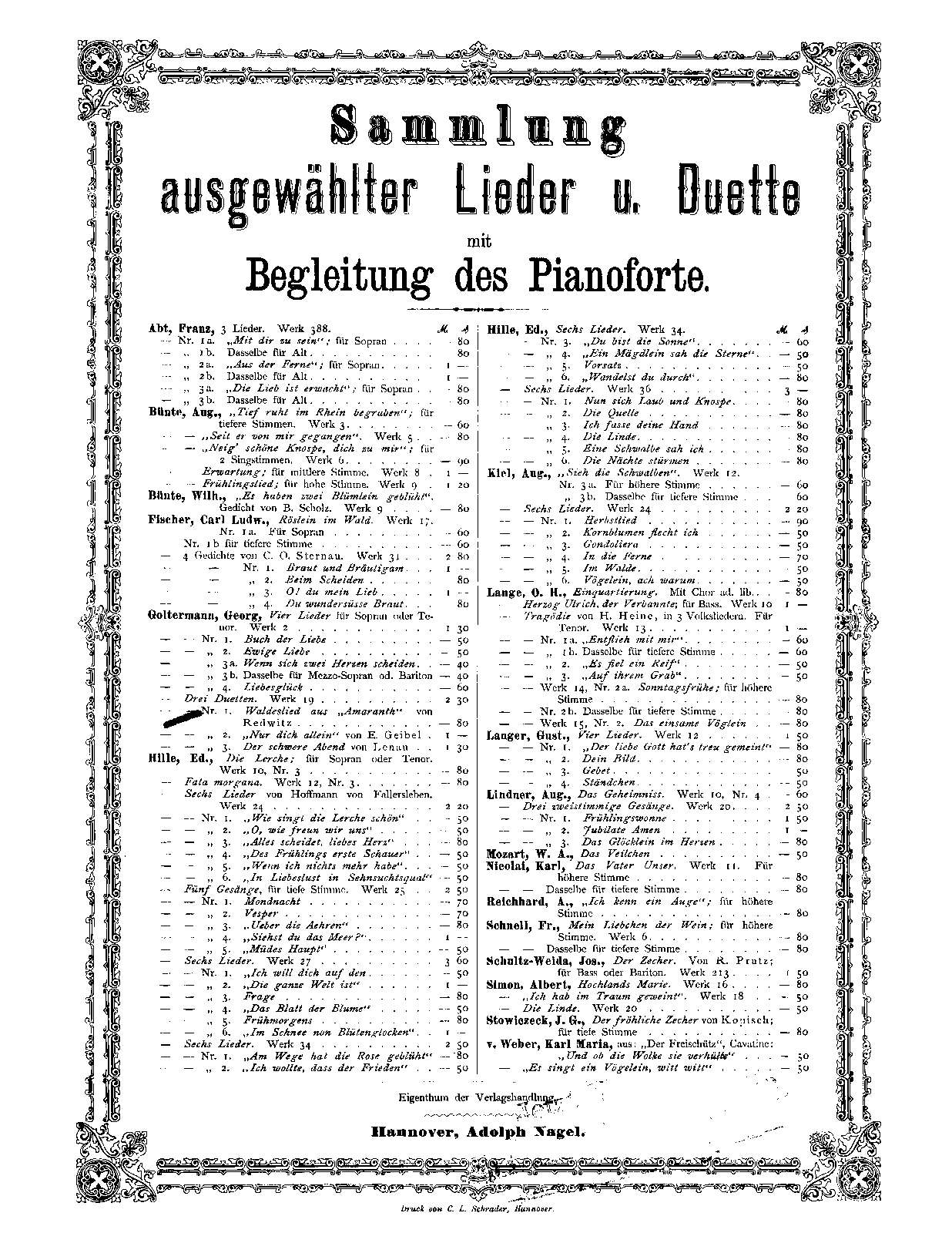| Genre Categories | Duets; For 2 voices, piano; For voices with keyboard; |