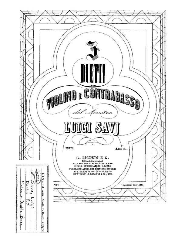 There is little information on Luigi Savi or Savj. One source states he was a professor of double bass at the Liceo Musicale of Piacenza until 1879. (http://biblioteche2.comune.parma.it/dm/lst_fram.asp)