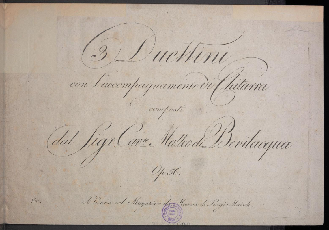 | Work Title | 3 Duettini con l'accompagnamento di Chitarra |