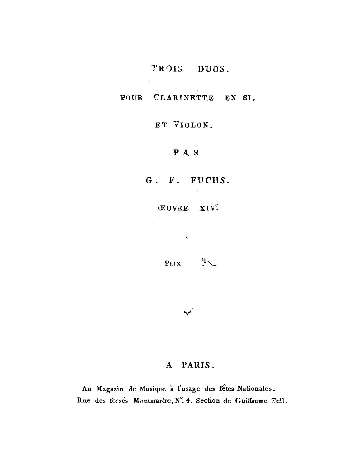 | Alternative. Title | Trois Duos pour clarinette en si et violon |
