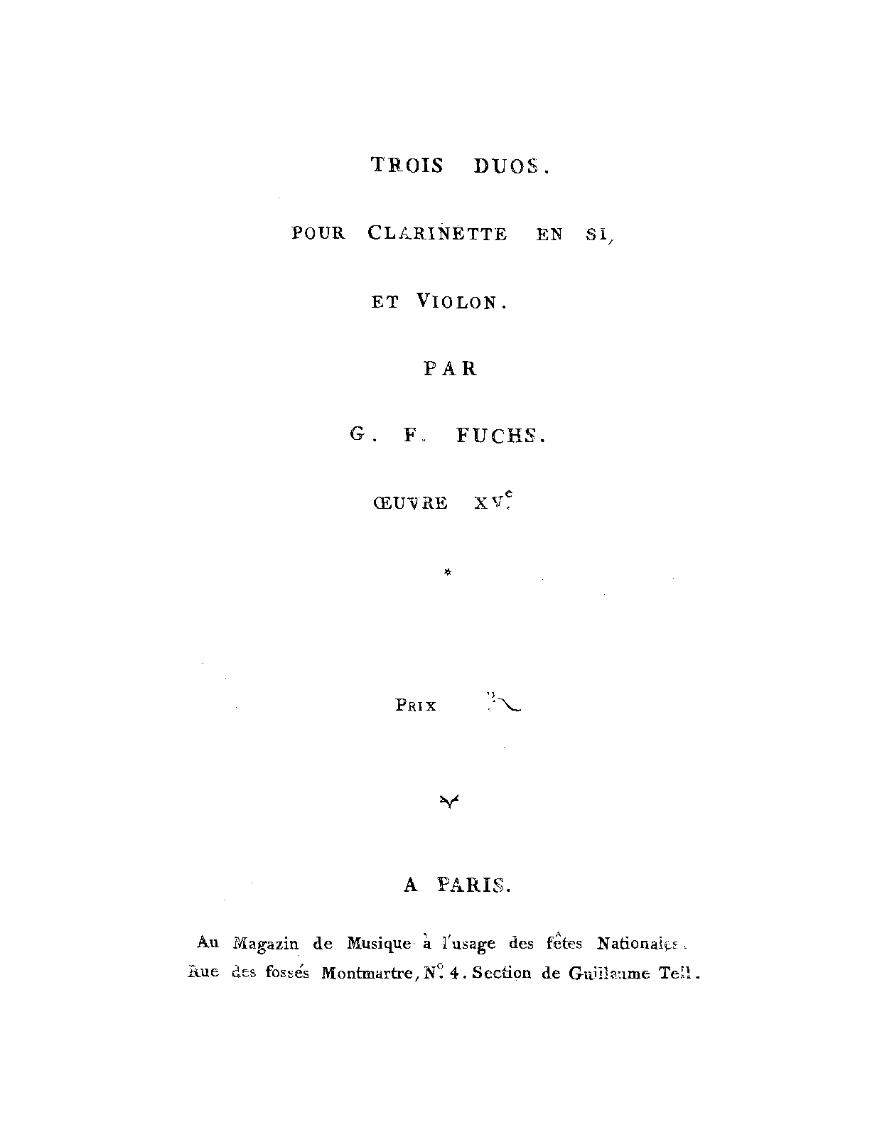 | Alternative. Title | Trois Duos pour clarinette en si et violon |