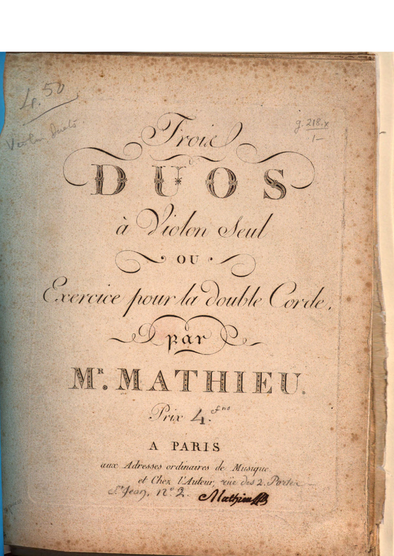 | Alternative. Title | Trois Duos à Violon Seul ou Exercice pour la double corde |