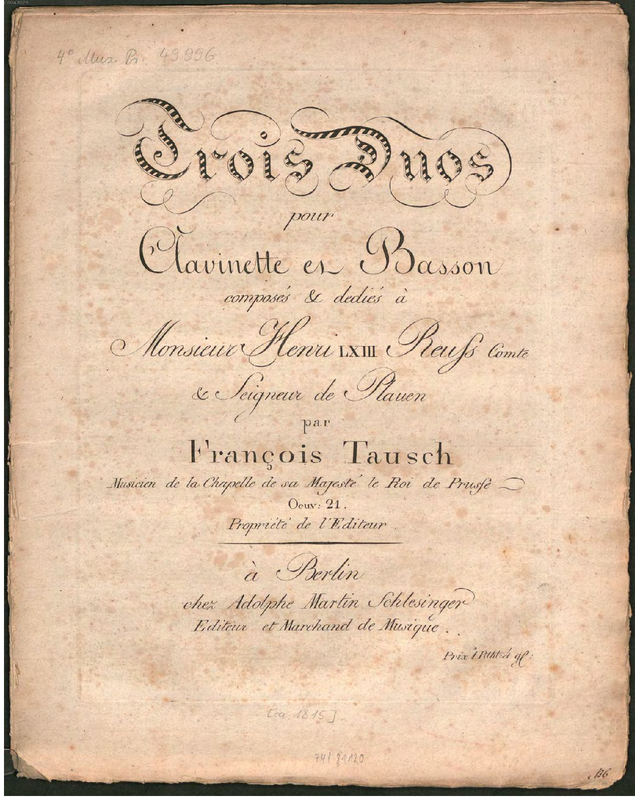 | Genre Categories | Duets; For clarinet, bassoon; Scores featuring the clarinet; |
