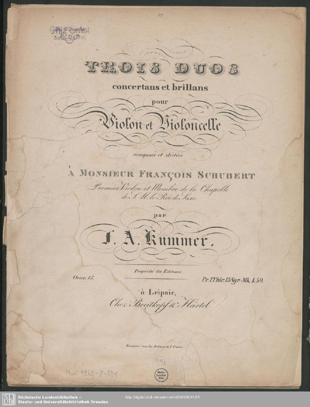 | Alternative. Title | Trois Duos concertans et brillians pour Violon et Violoncelle |
