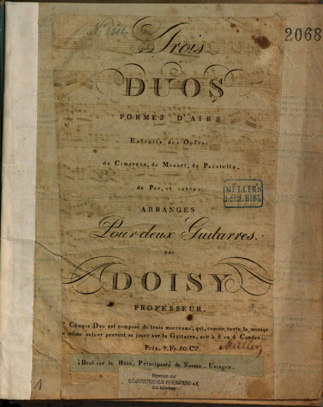 | Alternative. Title | Extraits des opéras de Cimarosa, de Mozart, de Paesiello, de Per, et autres. Arranges pour deux Guitarres |