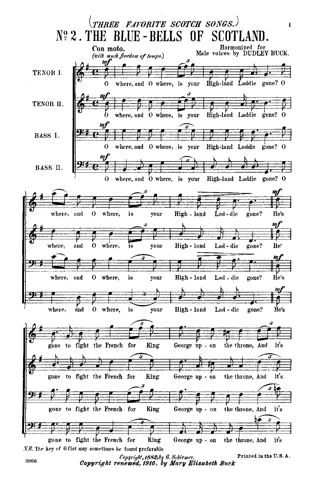 | Alternative. Title | Three Favorite Scotch Songs Harmonized for Male Voices, Quartet or Chorus |