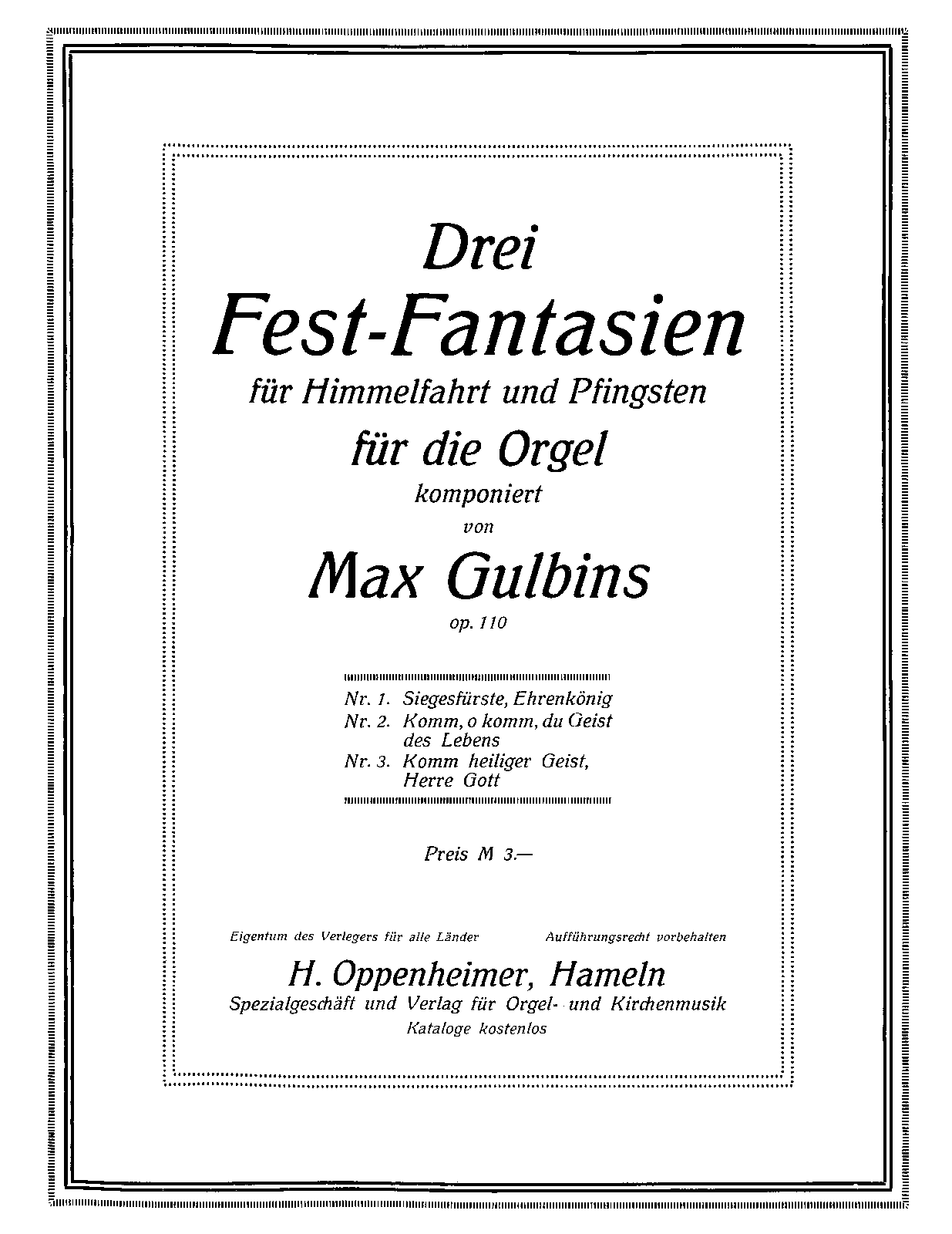 | Alternative. Title | Drei Fest-Fantasien für Himmelfahrt und Pfingsten für die Orgel |