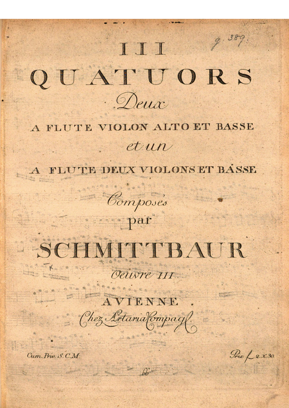 | Alternative. Title | III Quatuors Deux a flute violon alto et basse et un a flute deux violons et basse |