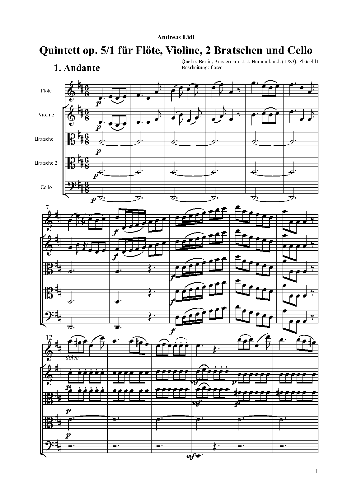 | Instrumentation | flute (or oboe), violin, 2 violas, cello |