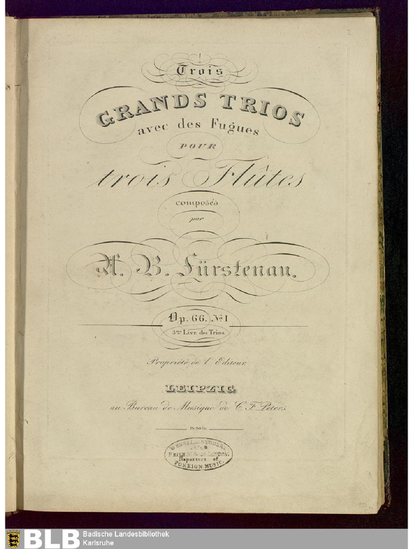| Alternative. Title | Trois Grands Trios avec des Fugues pour trois Flutes |