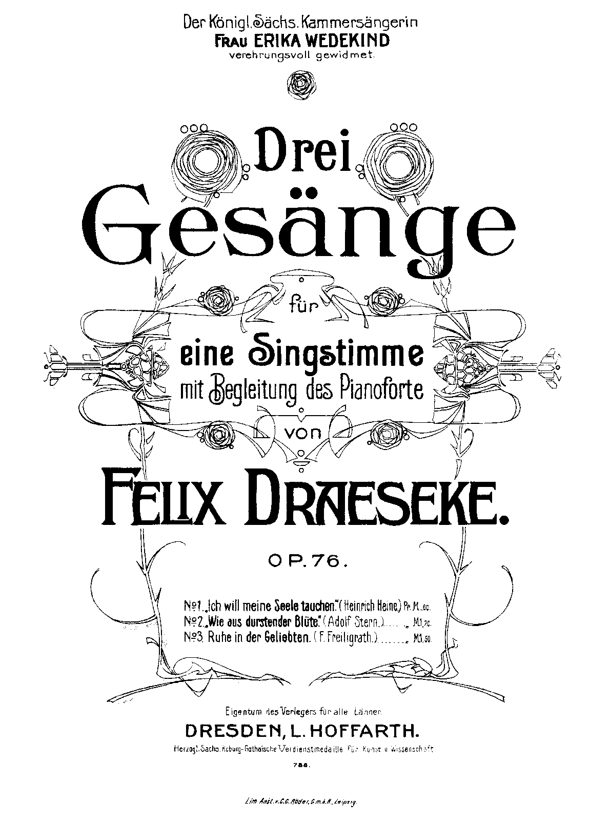 | Dedication | Der Köngl. Sächs. Kammersängerin Frau Erika Wedekind verehrungsvoll gewidmet |