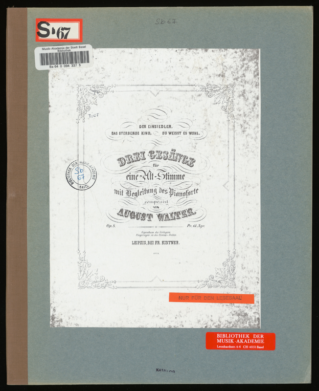 | Alternative. Title | Drei Gesänge für eine Alt-Stimme mit Begleitung des Pianoforte |