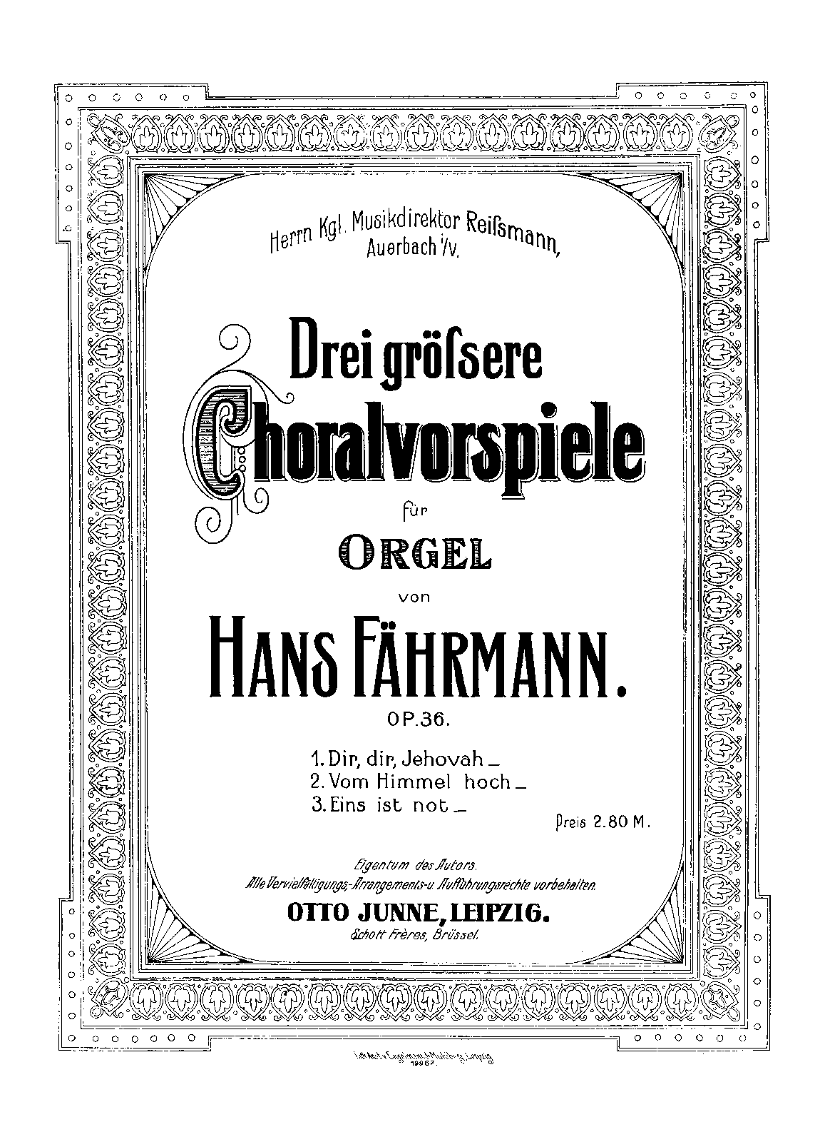 | Dedication | Herrn Kgl. Musikdirector Reissmann, Auerbach i/V |
