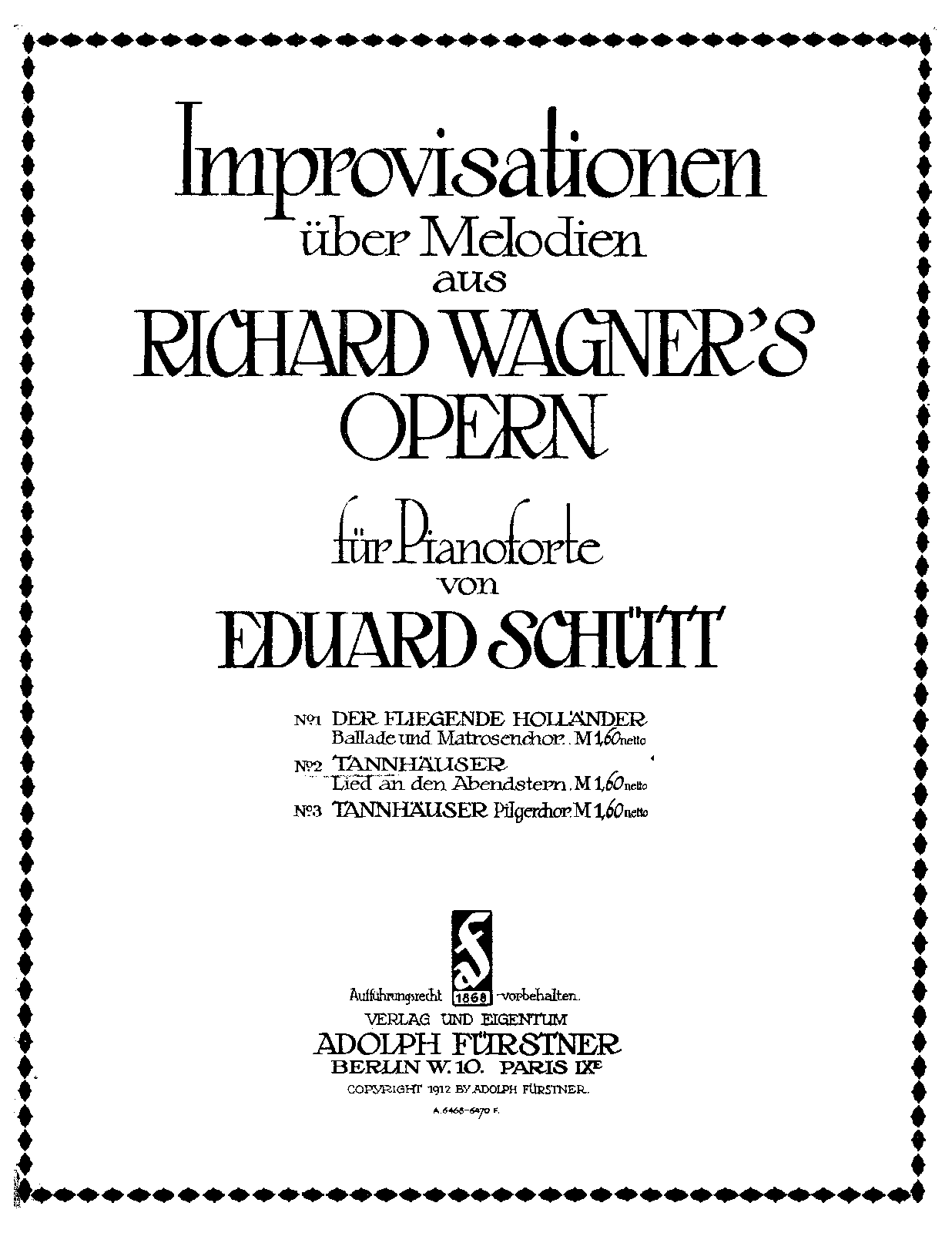 | Work Title | 3 Improvisationen über Melodien aus Richard Wagner's Opern |