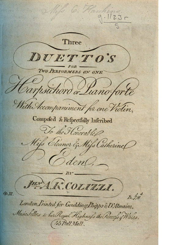 Three Duetto's for two performers on one Harpsichord or Piano-forte With Accompaniment for one Violin