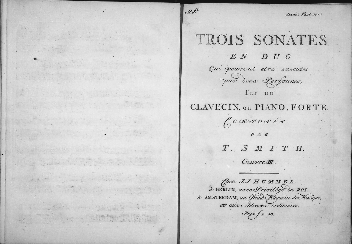 | Alternative. Title | Trois Sonates en duo qui peuvent etre executes par deux personnes, sur un clavecin, ou piano forte |
