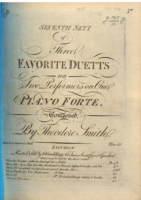 | Alternative. Title | Seventh Sett of Three Favorite Duetts for Two Performers on One Piano Forte |