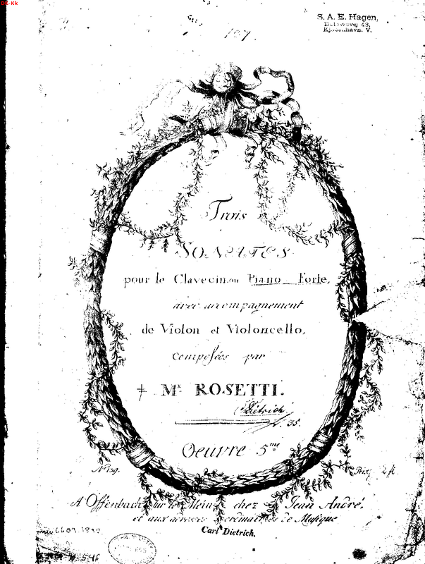 The Allgemeine Literatur-Zeitung (page 100, no.25 issue) mentions Rosetti's op.6 from André in 1787, so op.5 may have been released soon before or after. - Schissel