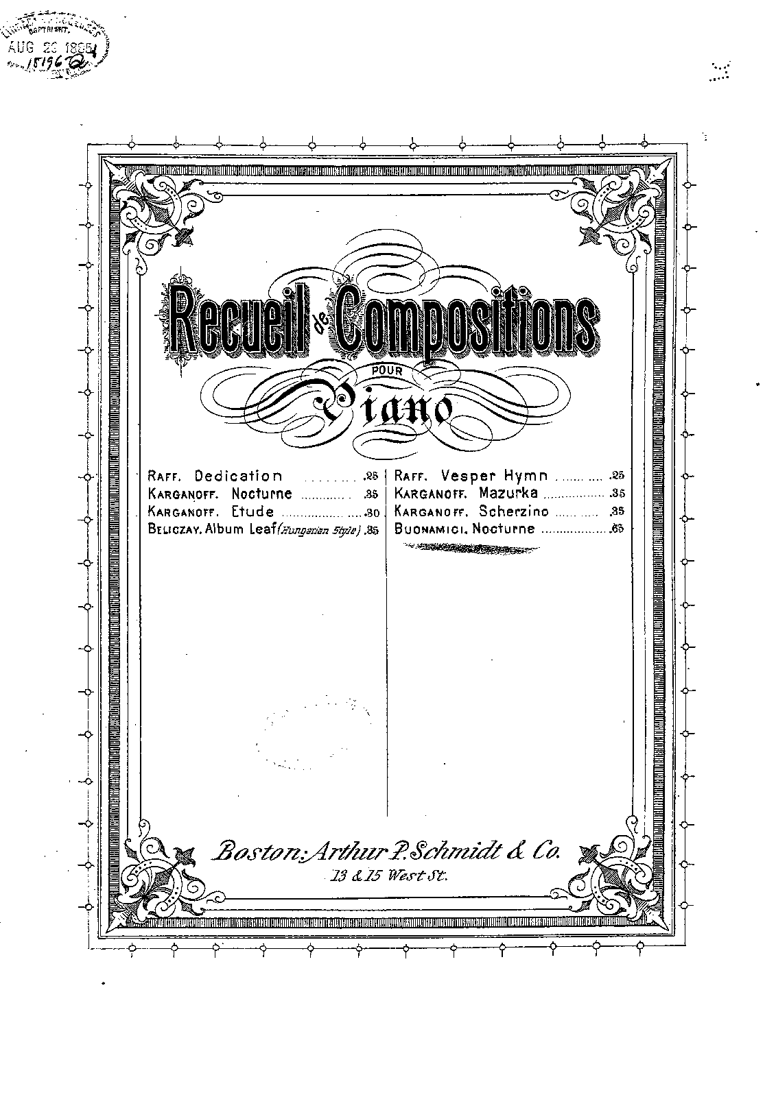 Boston: Arthur P. Schmidt & Co, 1885. Plate APS & Co 721.