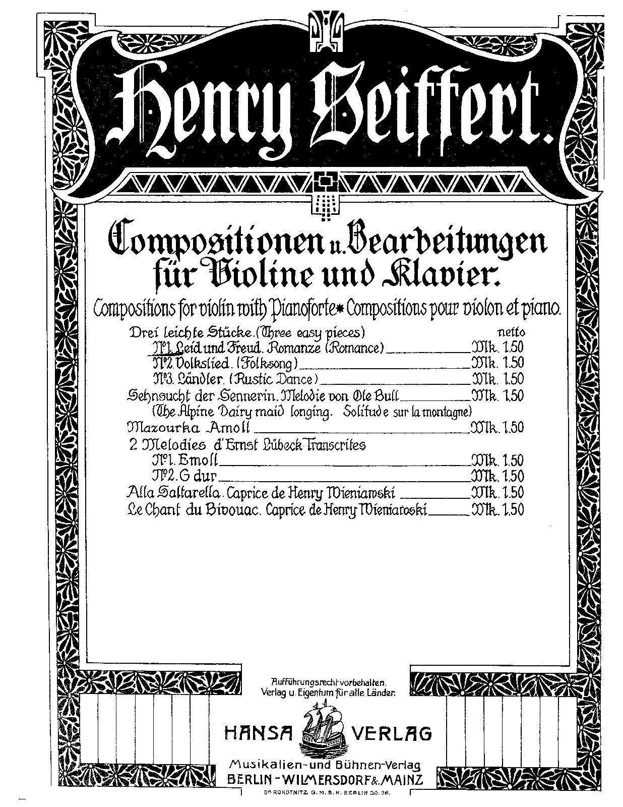 | Genre Categories | Pieces; For violin, piano; Scores featuring the violin; |