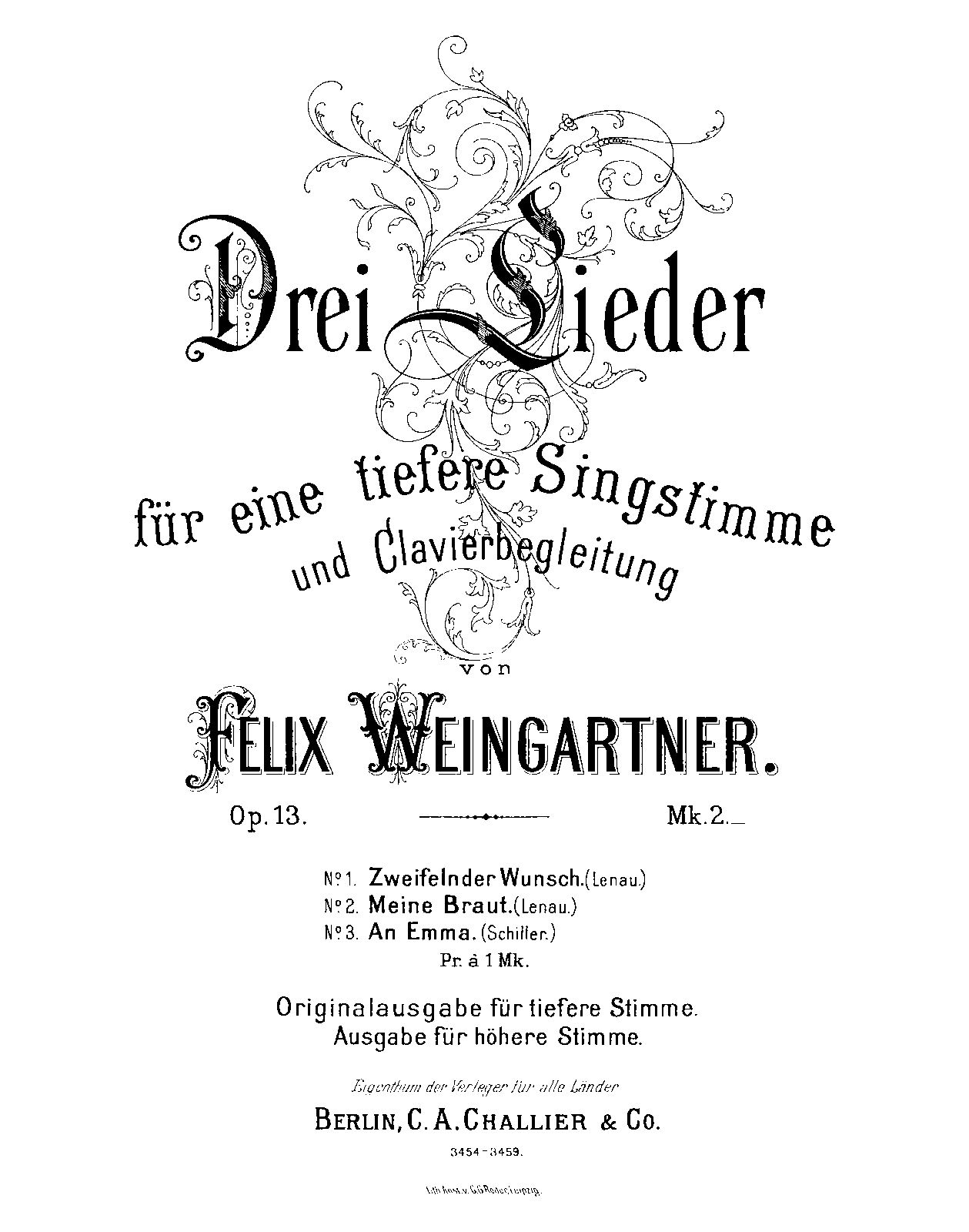 | Alternative. Title | Drei Lieder für eine tiefere Singstimme und Clavierbegleitung |