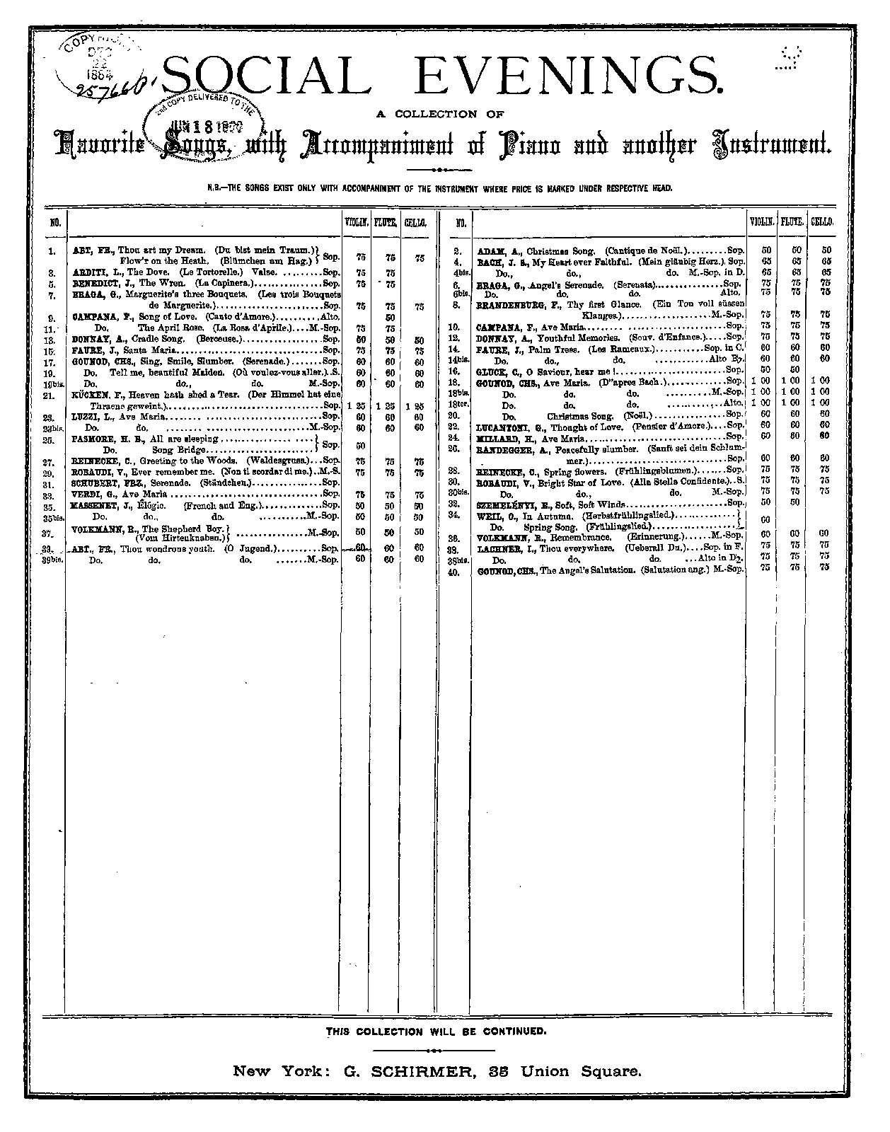 Publisher. Info. New York: G. Schirmer, 1884. Plate 3764.