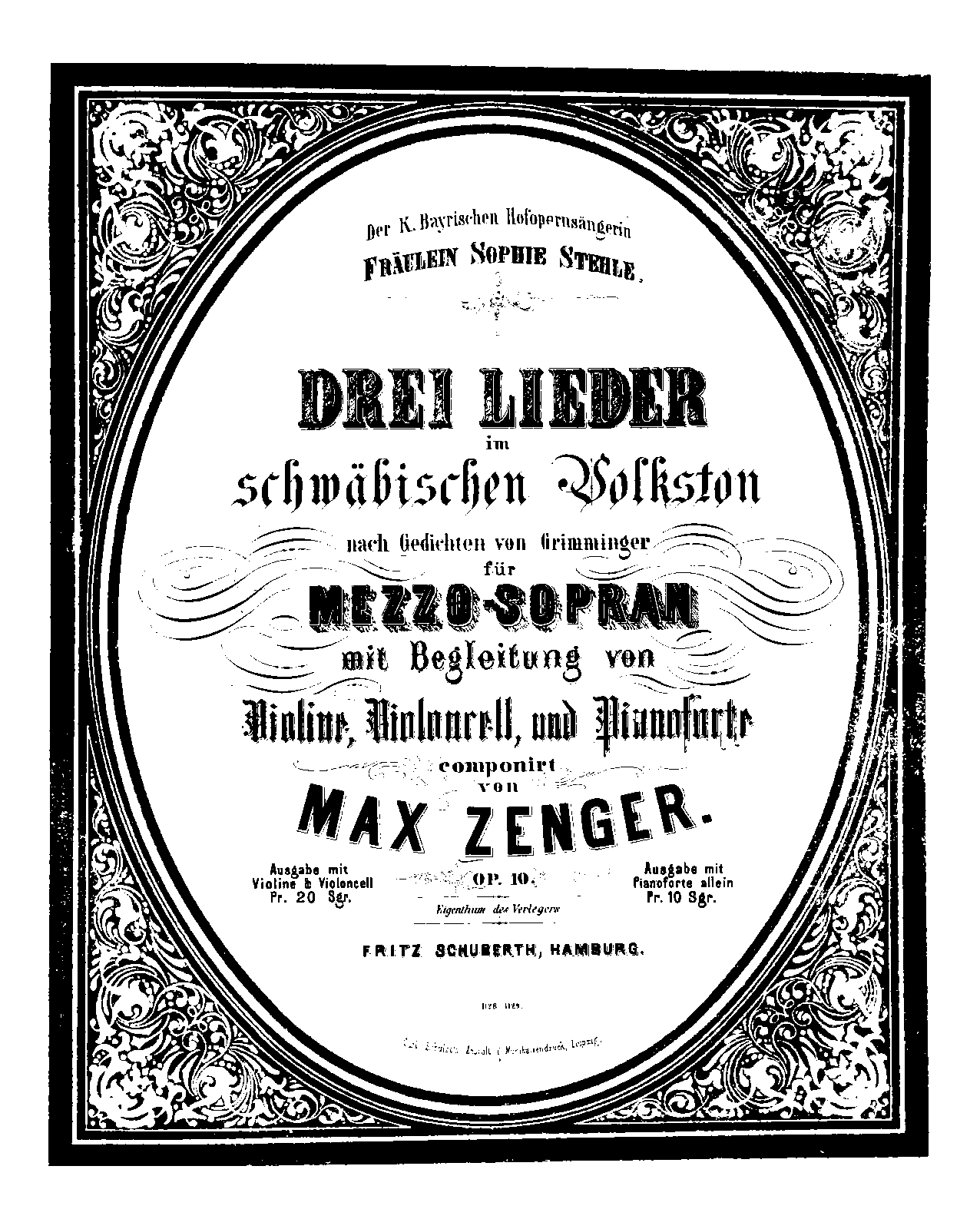 Drei Lieder im schwäbischen Volkston nach Gedichten von Grimminger für Mezzo-Sopran mit Begleitung von Violine, Violoncell und Pianoforte