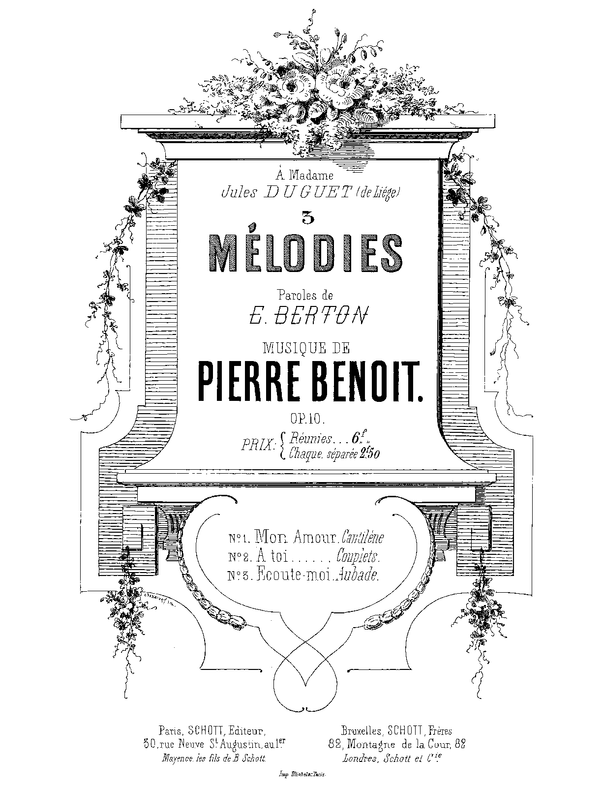 | External Links | Mon amour, A toi, and Ecoute-moi at Peter Benoit - Oeuvrecatalogus. |