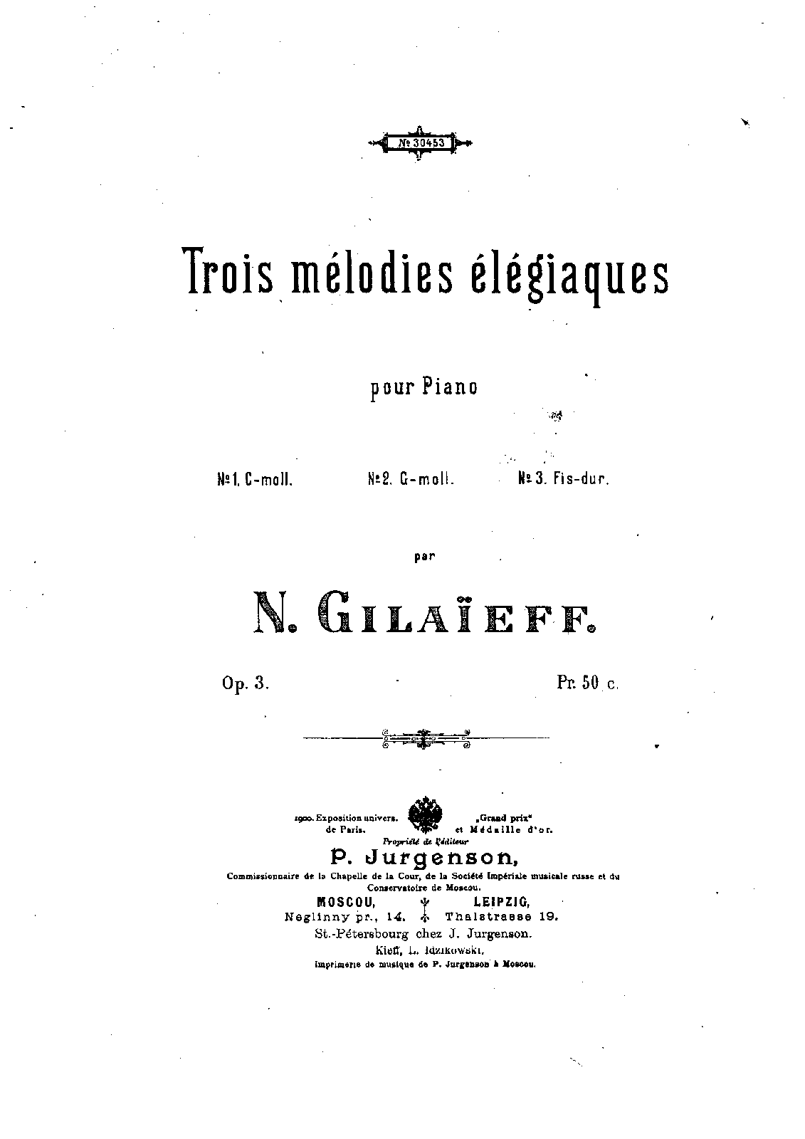 | Work Title | Trois Mélodies élégiaques, Op.3 |
