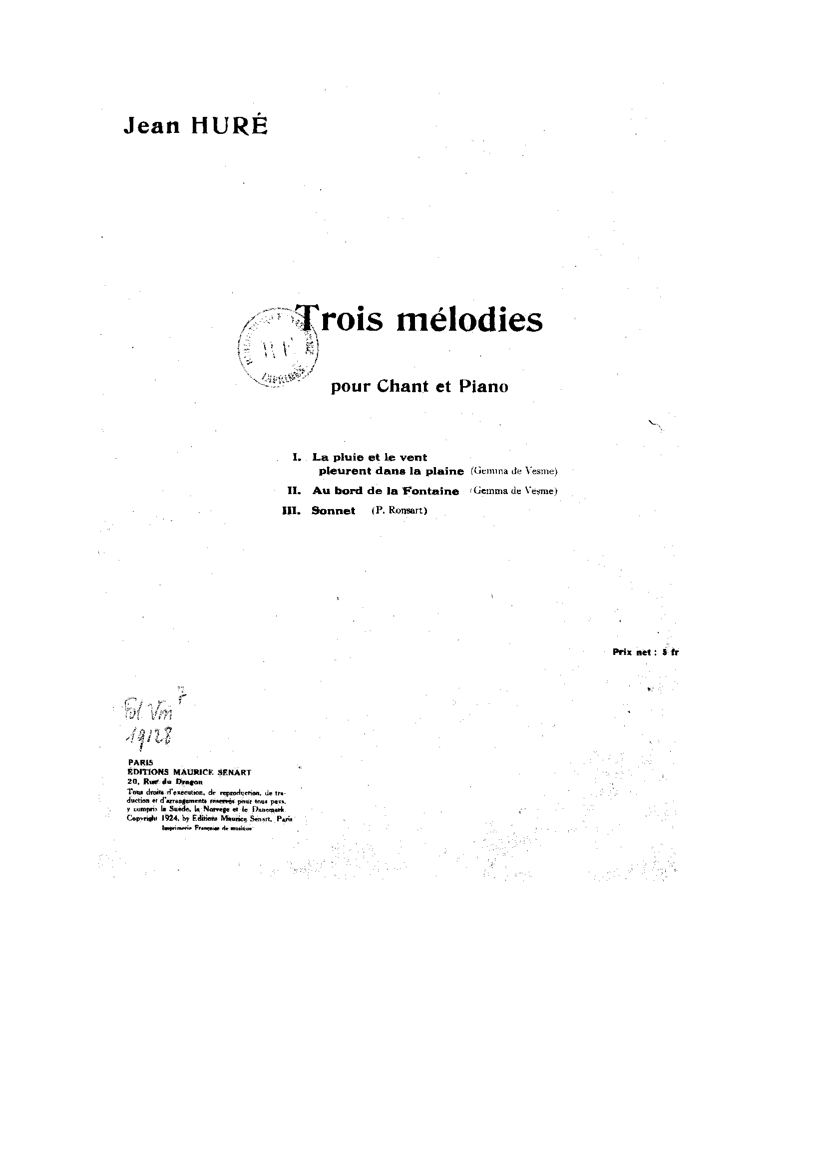 | Librettist | 1-2. Gemma de Vesme (fl.1924) 3. Pierre de Ronsard (1524–1585) |