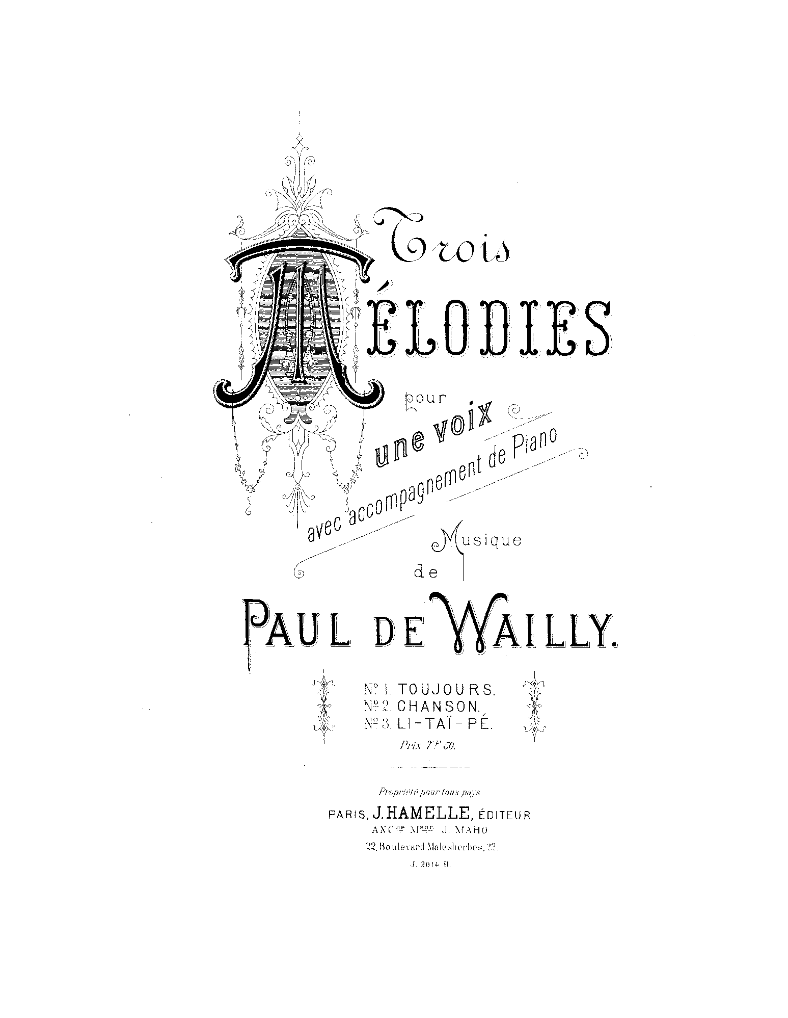 | Work Title | Trois mélodies |