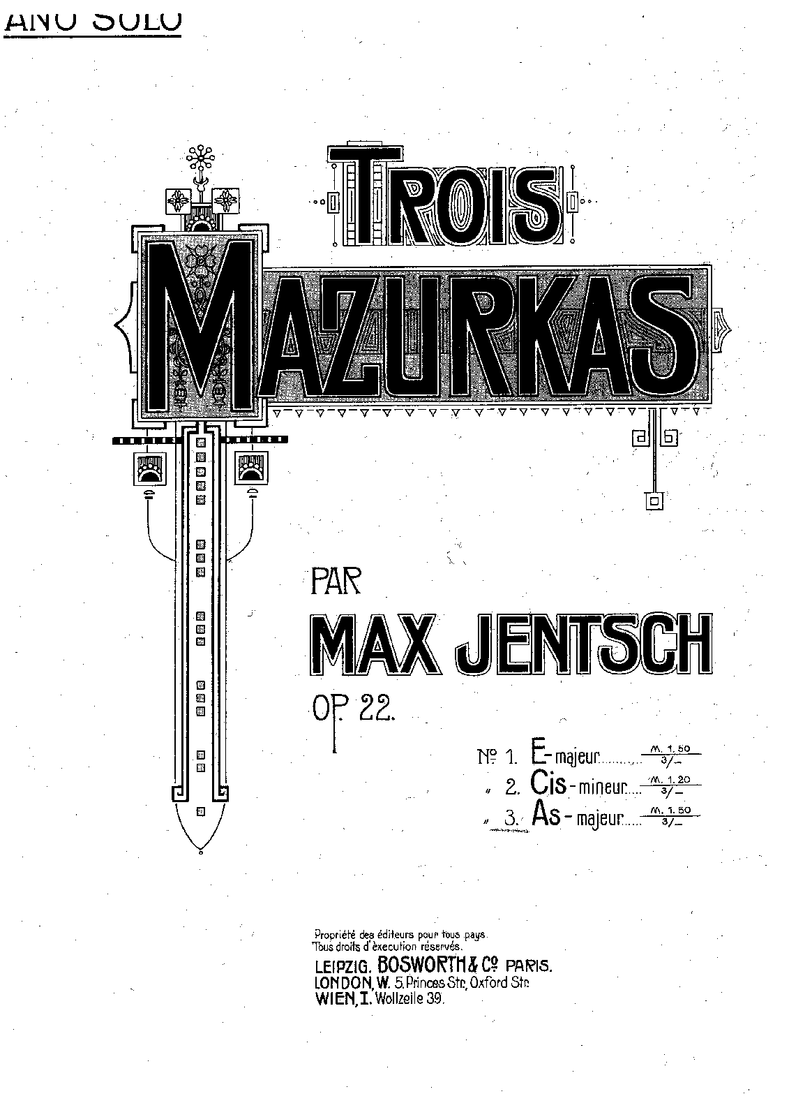 | First Publication. | 1908 – Leipzig: Bosworth & Co. |