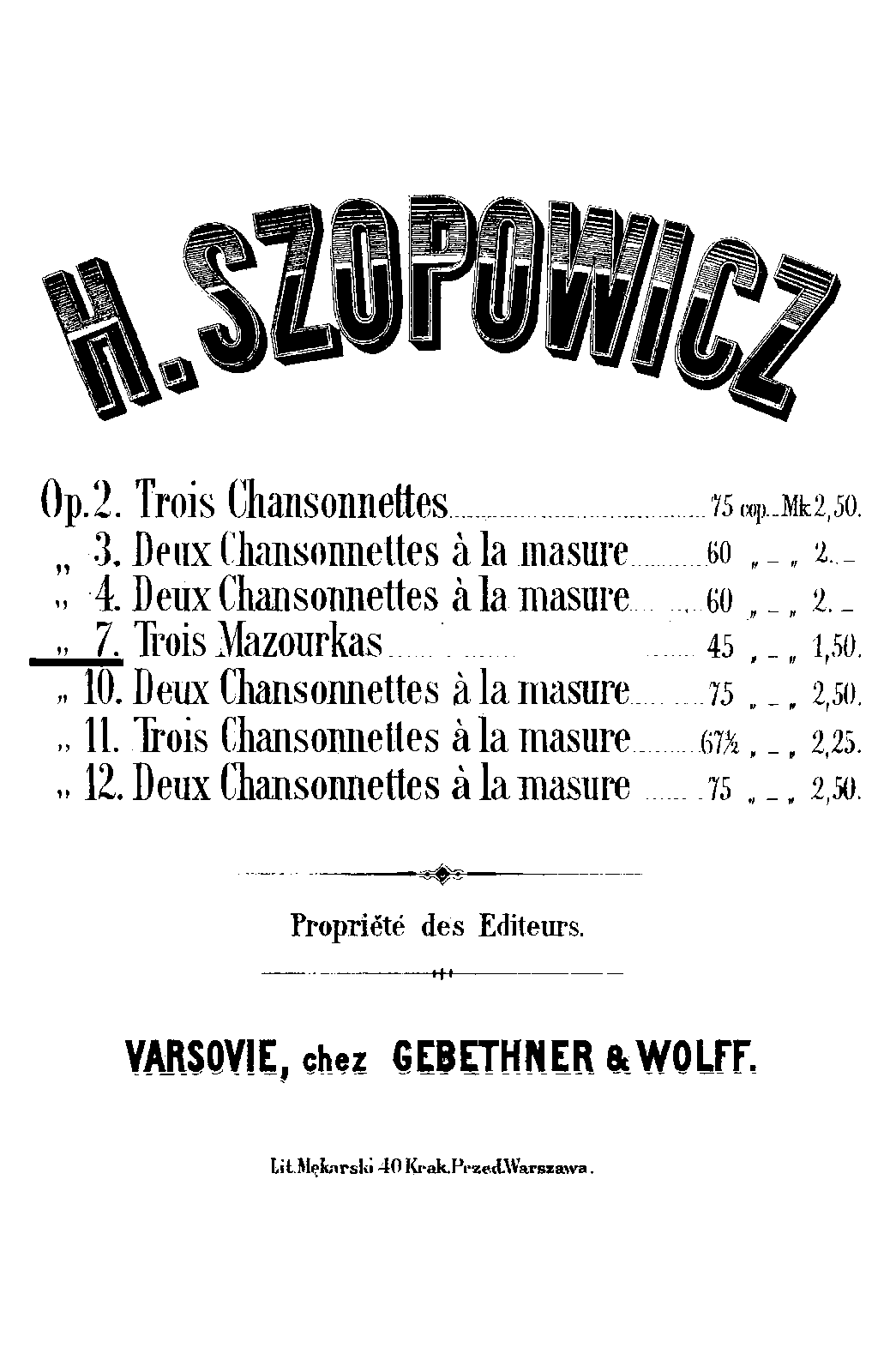 | Movements/SectionsMov'ts/Sec's | 3 mazurkas |