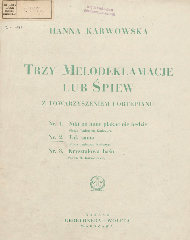 | Alternative. Title | Trzy melodeklamacje lub śpiew z towarzyszeniem fortepianu |