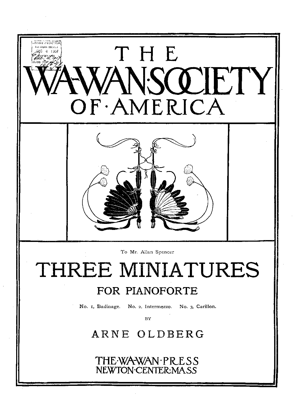 Publisher. Info. Newton Center: Wa-Wan Press, 1907.
