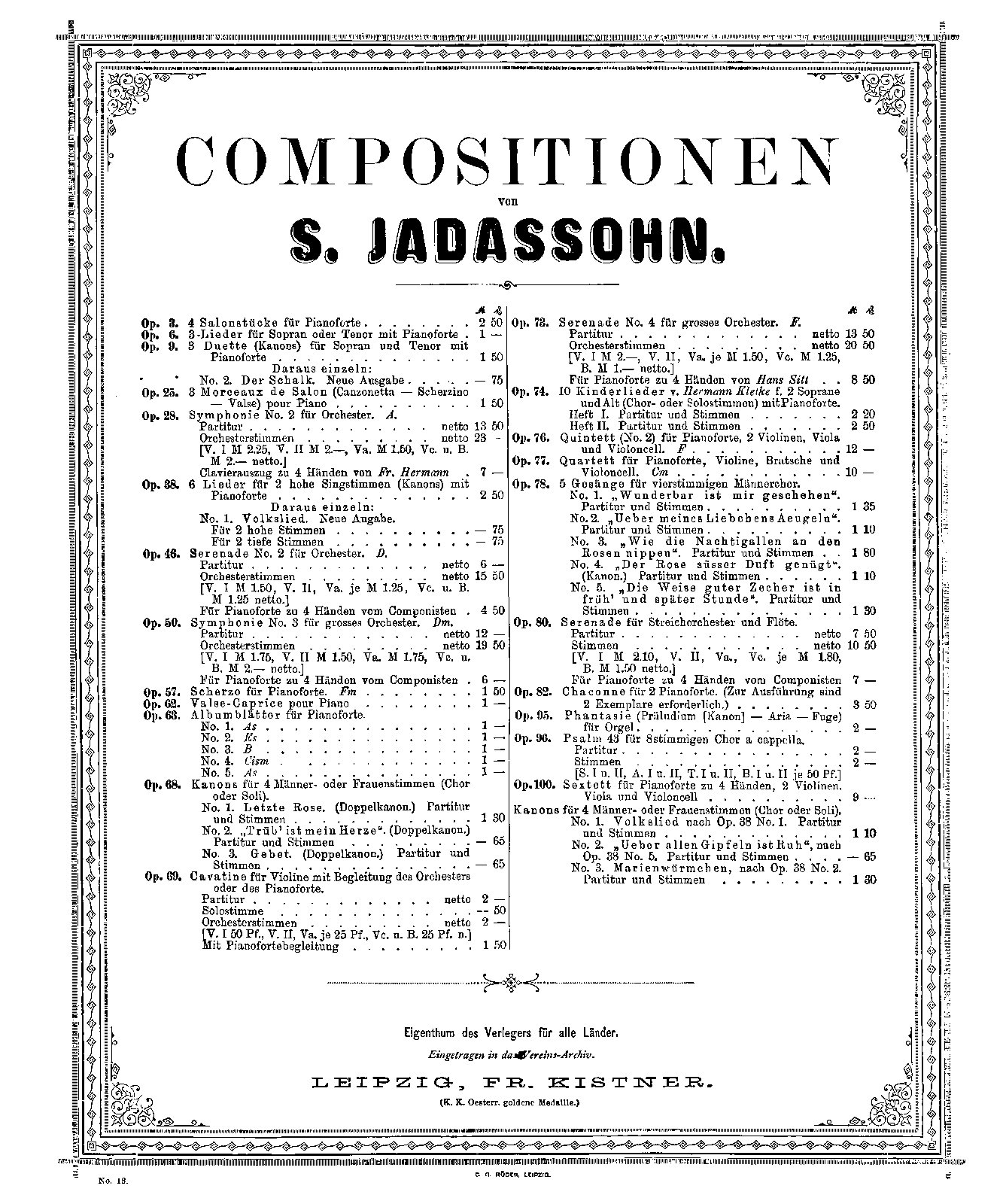 Leipzig: Fr. Kistner, n.d.[1861]. Plate 2563.