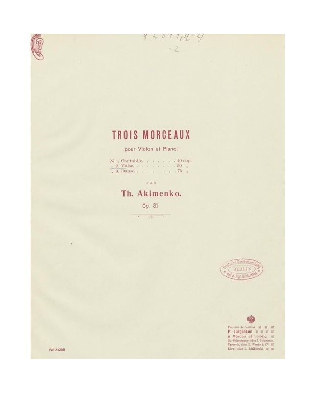 | Genre Categories | Pieces; For violin, piano; Scores featuring the violin; |