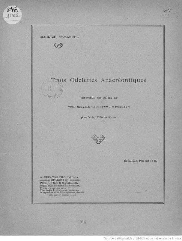 | Genre Categories | Songs; For voice, flute, piano; For voices with solo instruments; |