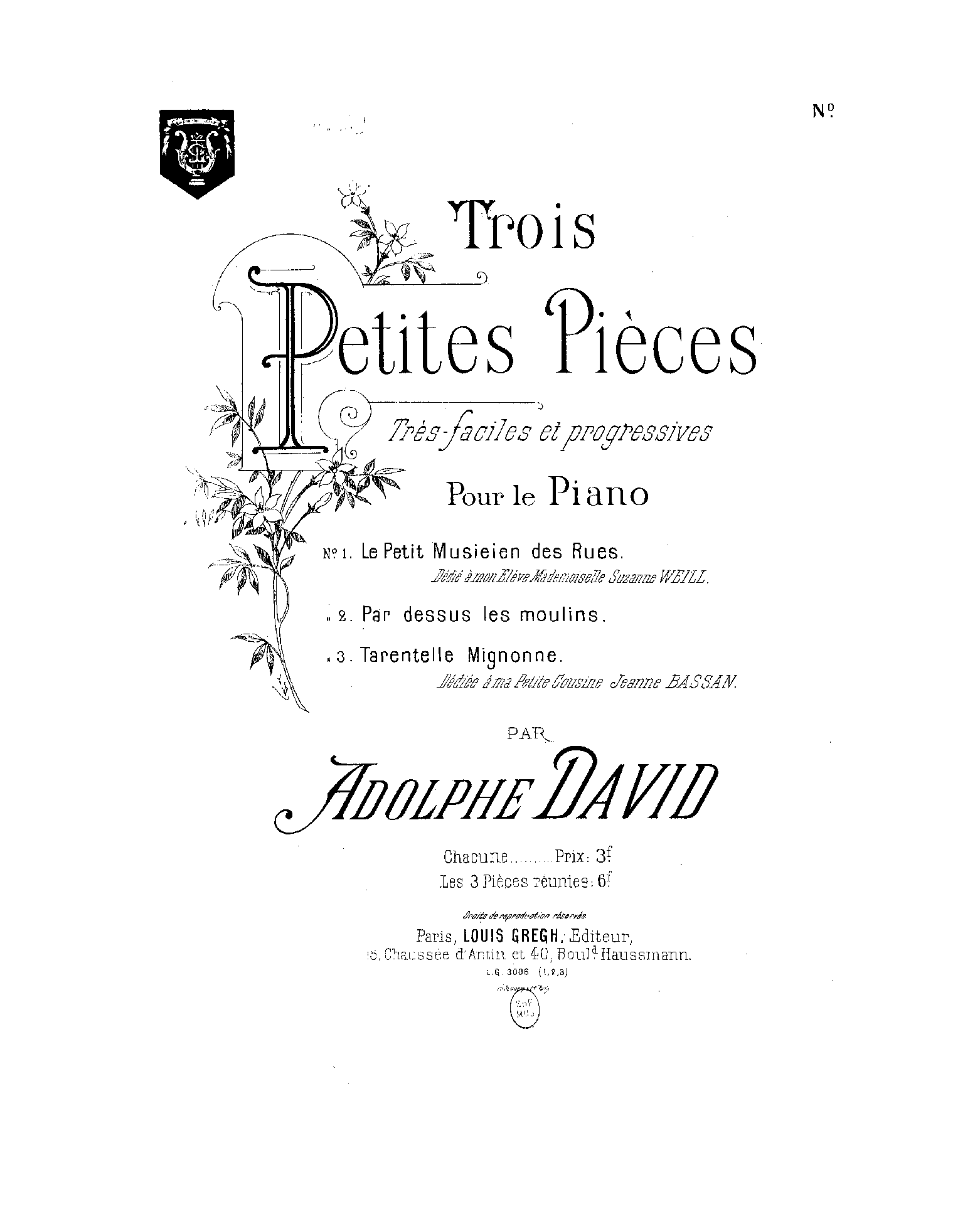 | Dedication | 1-2. à mon élève Mademoiselle Suzanne Weill 3. à ma petite cousine Jeanne Bassan |