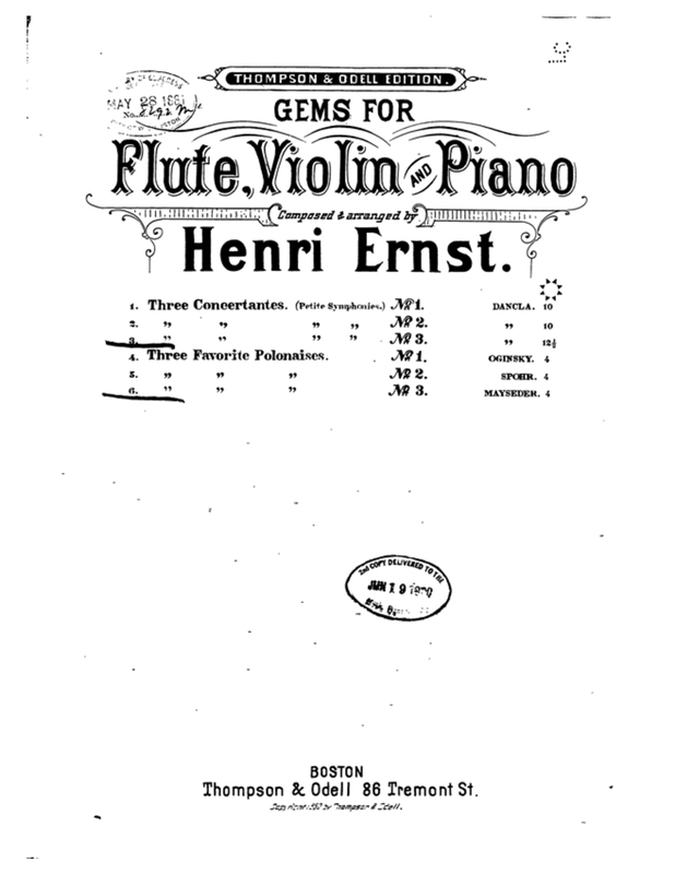 For 2 Flutes and Piano, or Flute, Violin and Piano (Ernst)