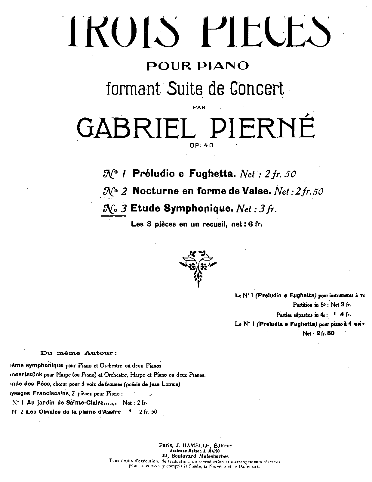 3 Pièces Formant Suite de Concert, Op.40 (Pierné, Gabriel)