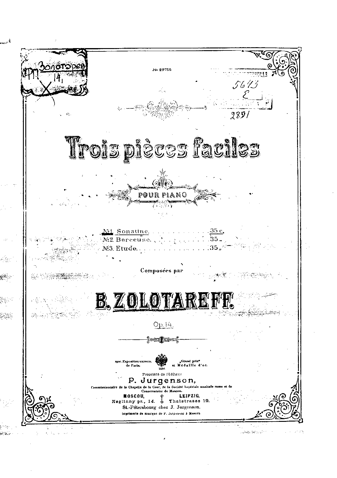 3 Pièces faciles, Op.14 (Zolotarev, Vasily)