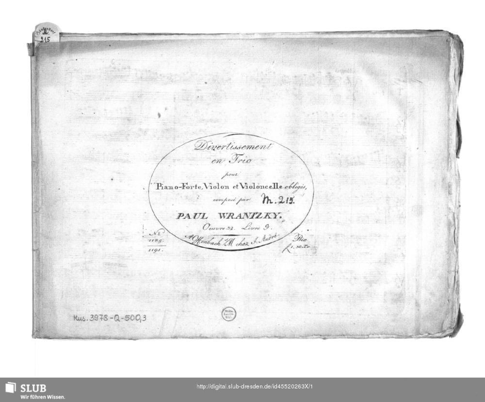 | Alternative. Title | Divertissement en Trio pour Piano-Forte, Violon et Violoncelle obliges |