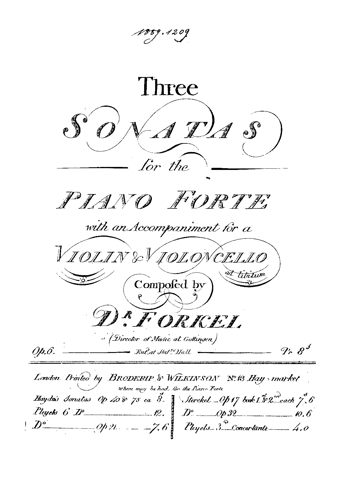| Alternative. Title | Three Sonatas for the Piano Forte with an accompaniment for a violin & violoncello |