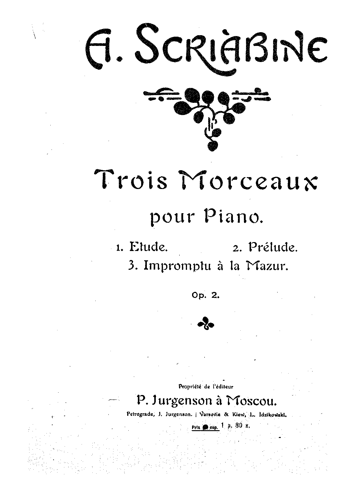 | Name Translations | Trois morceaux op. 2; Drei Stücke op.2; Three Pieces, Op. 2 |