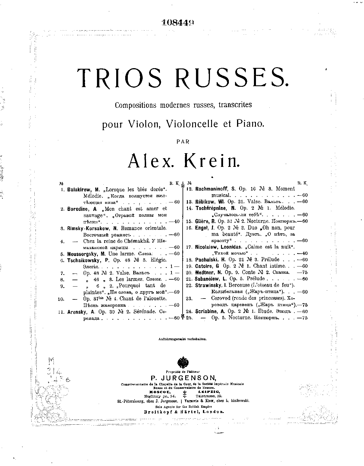 | First Publication. | 1894 – Moscow: Jurgenson, Plates 18904, 19261a-b |