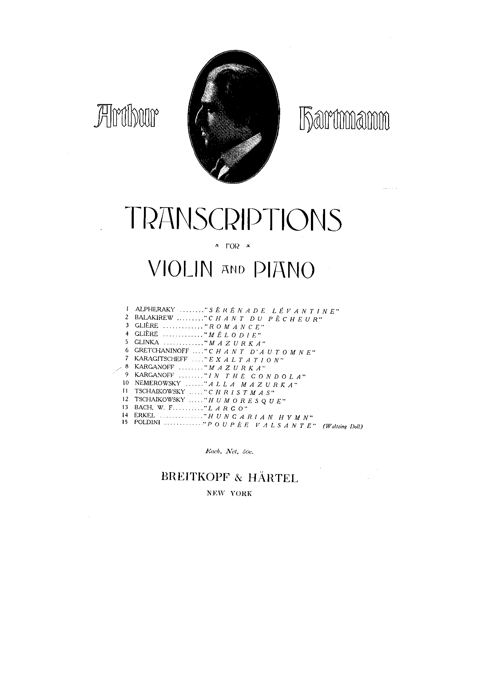 Transcriptions for Violin and Piano (No.8) New York: Breitkopf und Härtel, 1916. Plate Mazurka-8.
