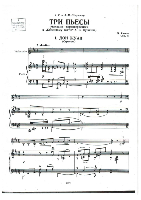 3 Pieces for 'The Stone Guest', Op.51bis (Gnesin, Mikhail)