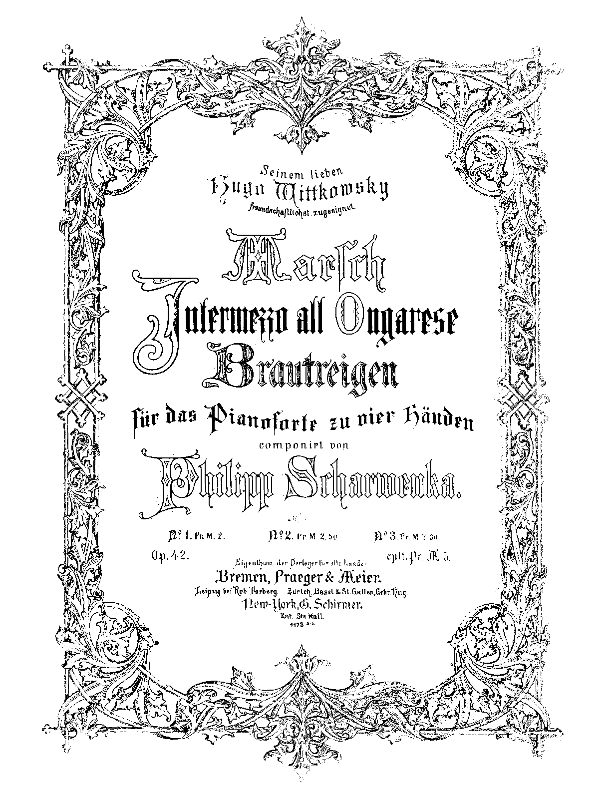 | Dedication | Seinem lieben Hugo Wittkowsky freundschaftlichst zugeeignet. |